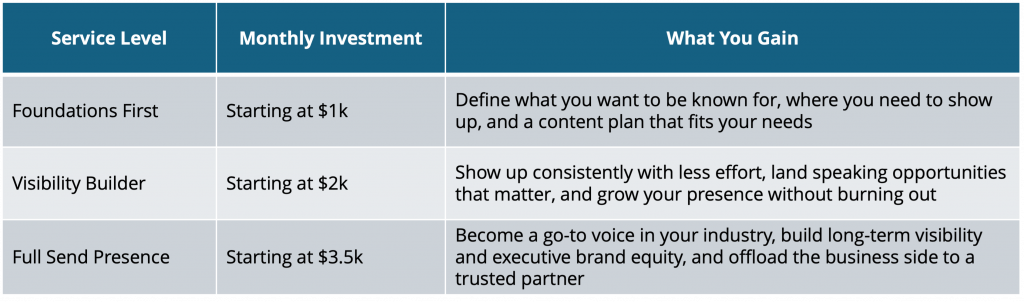 - Executives we’ve supported have landed keynotes, podcasts, and board-level visibility.